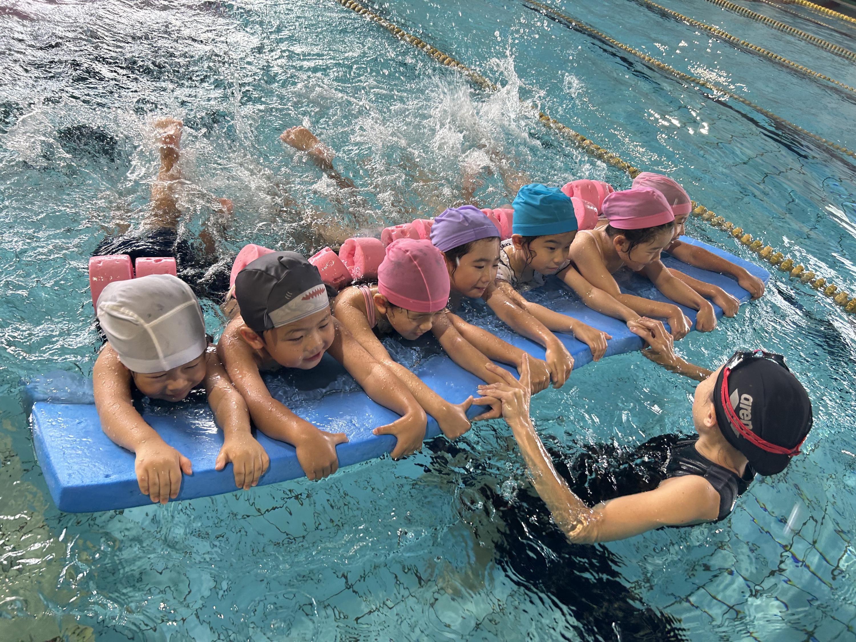 専門知識のあるコーチが一人ひとりのペースを合わせた丁寧な指導で、水慣れから浮き身、基本的な泳ぎへと楽しみながらレッスンをします。水に入ることを怖がっていた子も、回を重ねるにつれ「楽しい!」と自信に満ち溢れた笑顔を見せてくれるようになりました。その日の目標を子ども自身が決めてスタートします。目標に向けてほんの少し勇気を出してやってみることで得られた喜びや達成感が子ども達の自信に繋がっていくのだと考えています。